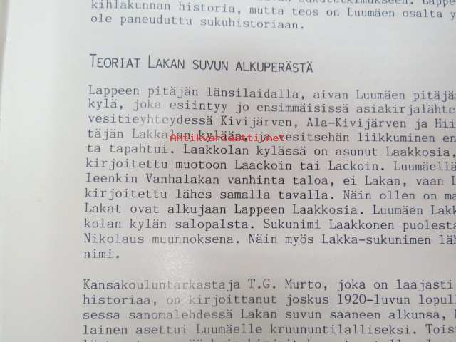 Lakan suku - Vanhalakka, Sydänmaanlakka, Lakka -family & genealogy book