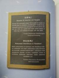 | Saatavilla | 1 kpl | | Julkaisuvuosi | 1983 | | Sivuja | 205 | | Kunto | K3 | | Etukannessa on omiste kirjoitettuna | | Sidonta/painoasu | Kuvitettu kovakantinen | | ISBN | 951-99438-4-6 | | Kielet | Suomi |