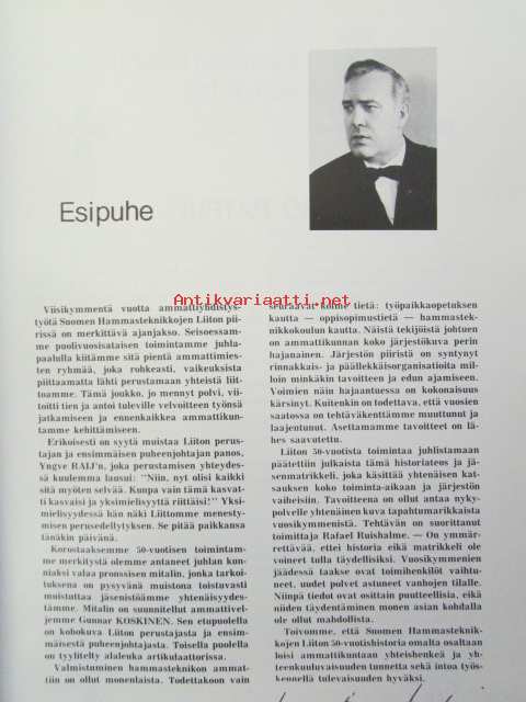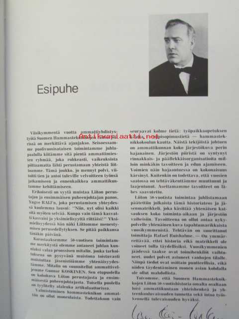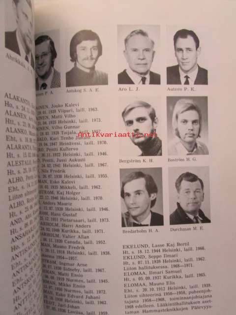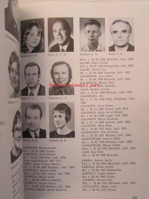 | Saatavilla | 1 kpl | | Julkaisuvuosi | 1975 | | Sivuja | 239 | | Kunto | K2 | | Sidonta/painoasu | Sidottu (kovak.) | | ISBN | 951-99045-0-6 | | Kielet | Suomi |