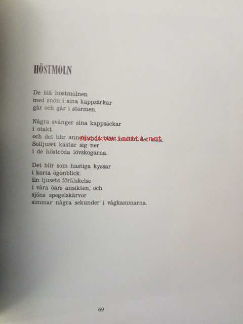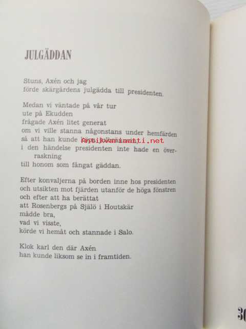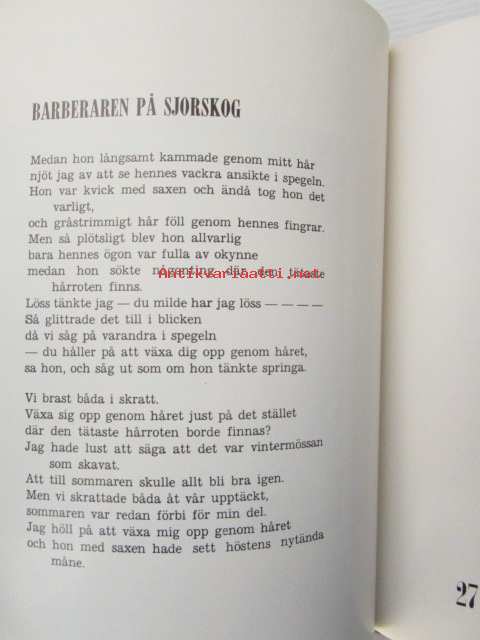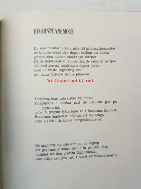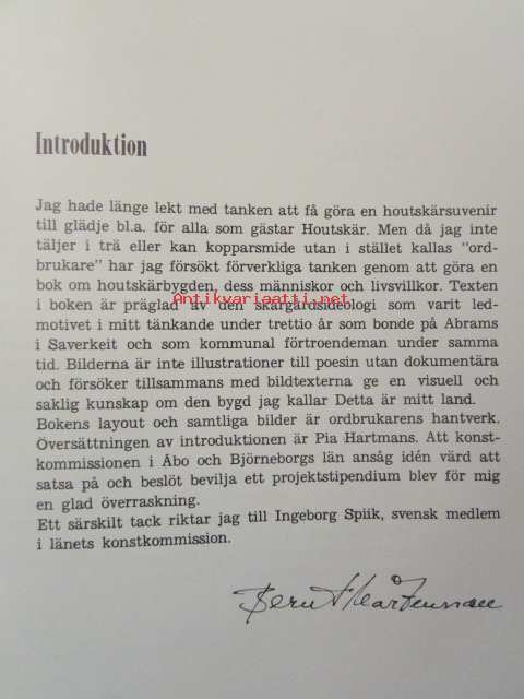 | Saatavilla | 1 kpl | | Julkaisuvuosi | 1982 | | Sivuja | 78 | | Painos | 1. | | Kunto | K3 | | Sidonta/painoasu | Sidottu (kansipaperit) | | ISBN | 951-550-214-4 | | Kielet | Ruotsi |