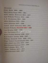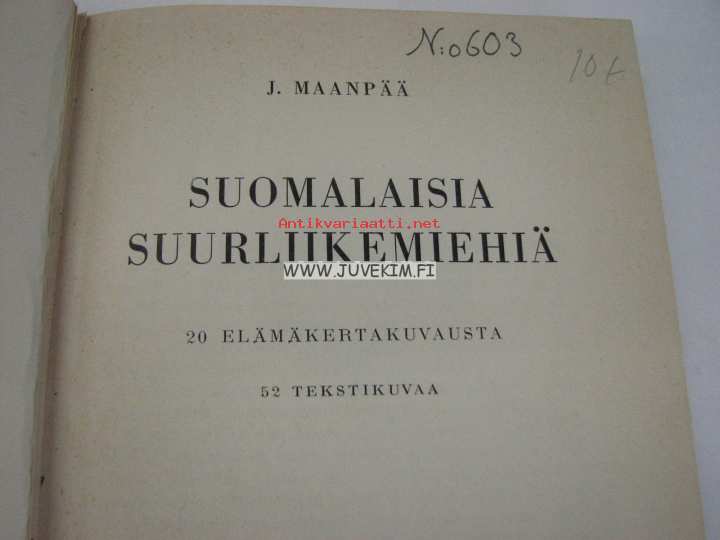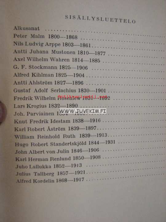 | Saatavilla | 1 kpl | | Julkaisuvuosi | 1942 | | Sivuja | 318 | | Painos | 1. | | Kunto | K2 | | Sidonta/painoasu | Jälkisidos | | Kielet | Suomi |