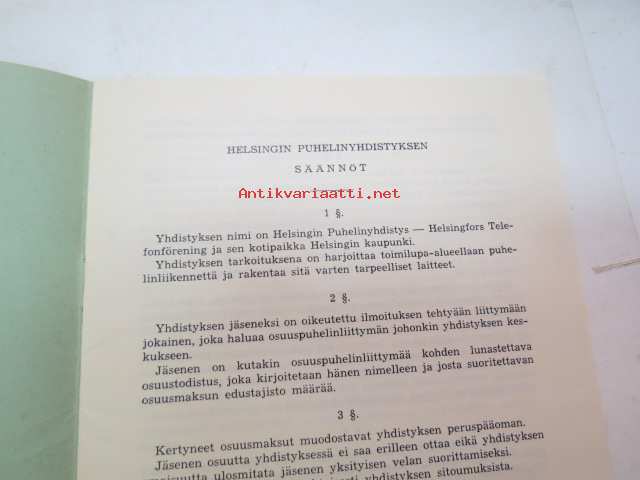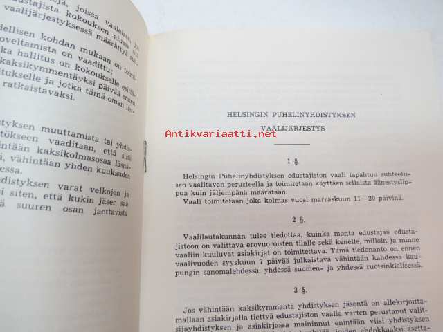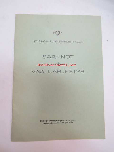 Helsingin Puhelinyhdistyksen säännöt ja vaalijärjestys -telephone company rules (Helsinki)