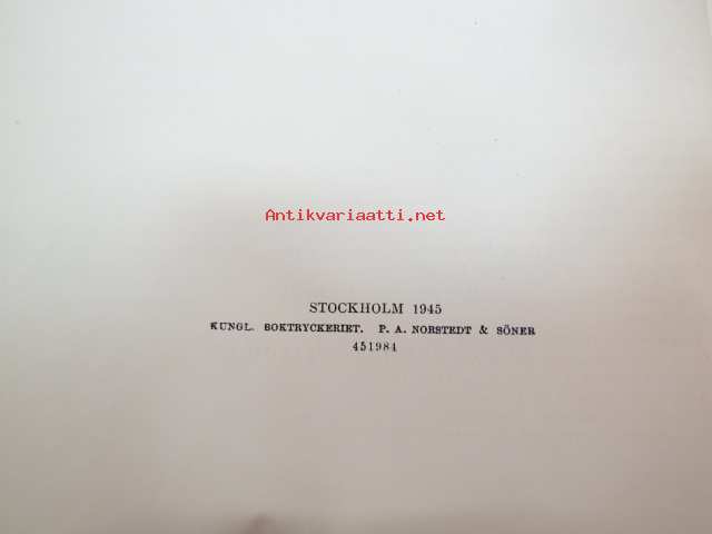 | Saatavilla | 1 kpl | | Julkaisuvuosi | 1945 | | Sivuja | 472 | | Painos | 1. | | Kunto | K2 | | Sidonta/painoasu | Sidottu (kovak.) | | Kielet | Ruotsi |