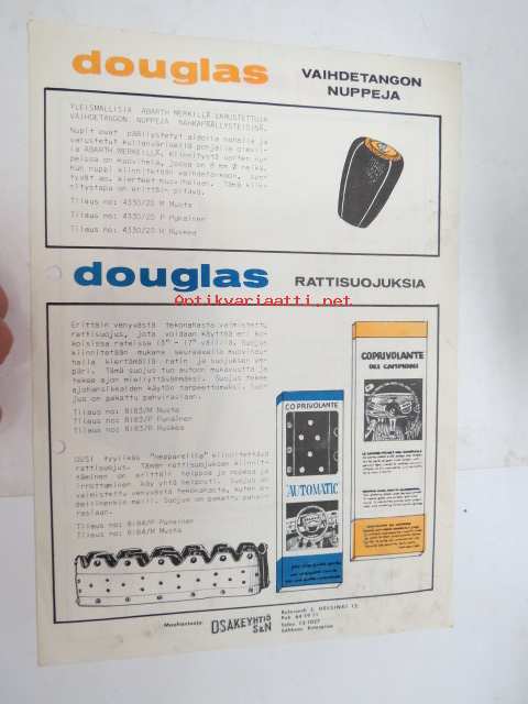 Douglas niskatuet, vaihdetangon nupit, rattisuojukset -myyntiesite / brochure