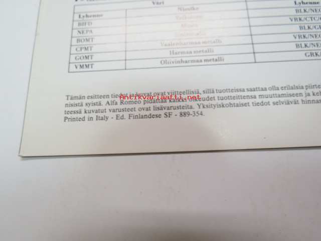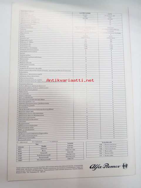 Alfa Romeo 164 -myyntiesite / brochure