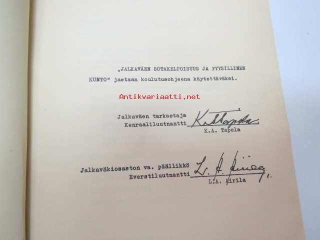 Jalkaväen sotakelpoisuus ja fyysillinen kunto 1952 -military manual - physical condition and fit to combat etc.