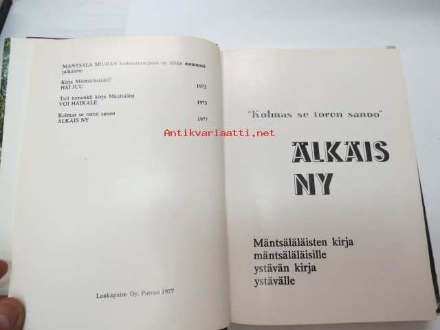 Älkäis ny - kolmas se toren sanoo - Mäntsäläläisten kirja mäntsäläläisille - ystävän kirja ystävälle -paikkakuntahistoriaa kertomusten, artikkelien, muistelusten ja valokuvien muodossa -local history15 x 21 cm.