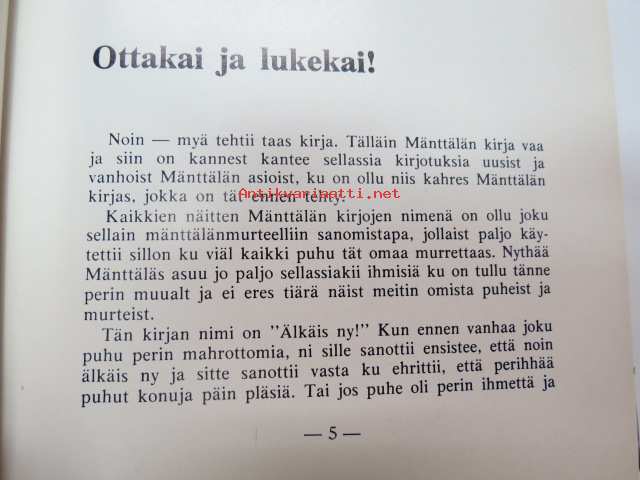 Älkäis ny - kolmas se toren sanoo - Mäntsäläläisten (Mäntsälä) kirja mäntsäläläisille - ystävän kirja ystävälle -paikkakuntahistoriaa kertomusten, artikkelien,