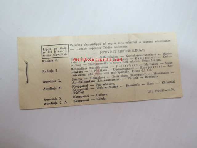 Turun kaupungin liikennelaitos, 19705 x 12 cm.