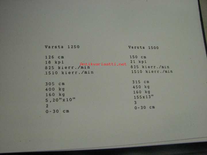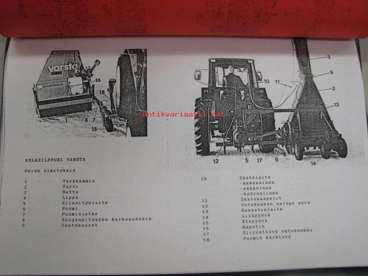 Varsta 1250, 1500 -käyttö, hoito, varaosat sarjanumerosta 27590- alkaen (1989)