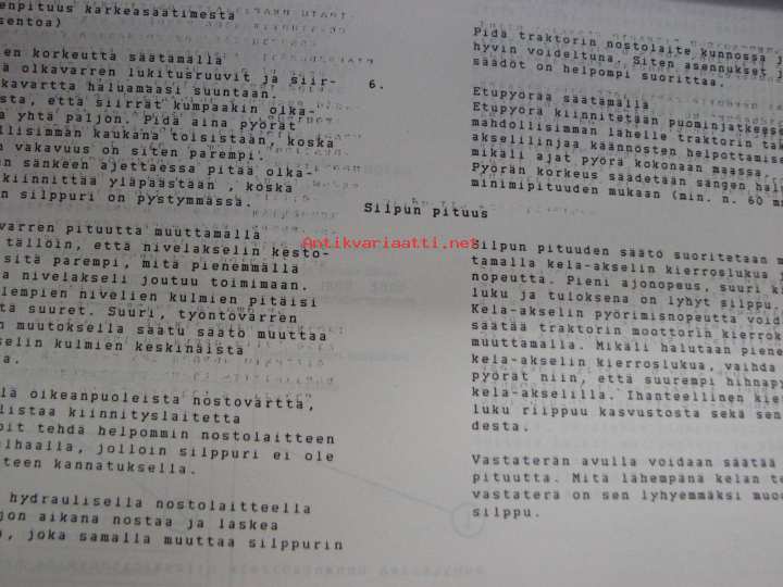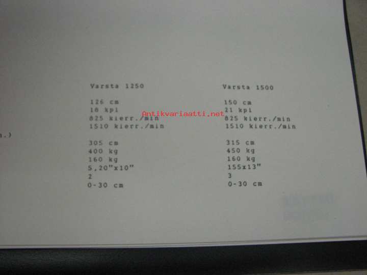 Varsta 1250, 1500 -käyttö, hoito, varaosat sarjanumerosta 28240- alkaen (1990)