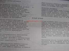 | Saatavilla | 10 kpl | | Julkaisuvuosi | 1990 | | Sivuja | 17 | | Kunto | K2 | | Sidonta/painoasu | Muu | | Kielet | Suomi |