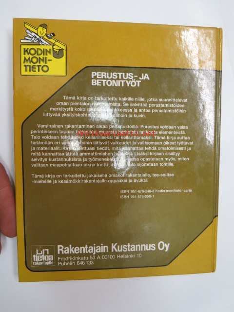 | Saatavilla | 1 kpl | | Julkaisuvuosi | 1983 | | Sivuja | 100 | | Painos | 1. | | Kunto | K3 | | Sidonta/painoasu | Kuvitettu kovakantinen | | ISBN | 951-676-258-1 | | Kielet | Suomi |