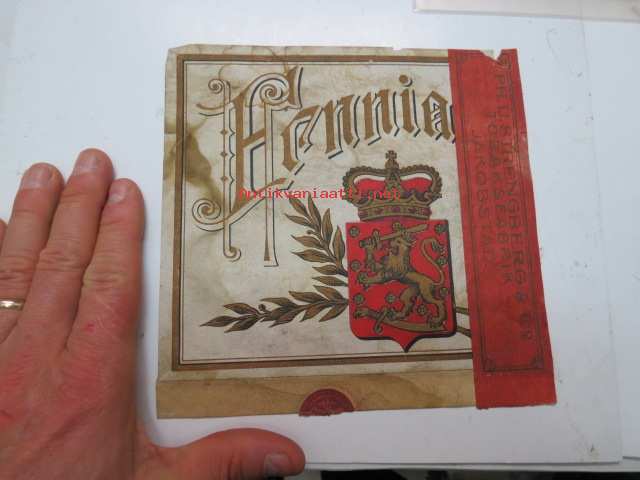 Fennia - PH.U. Strengberg & Co Tobaksfabrik, Jakobstad -tupakkaetiketti, tukkupakkaus - Tobacco wholesale box label