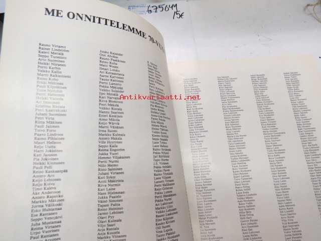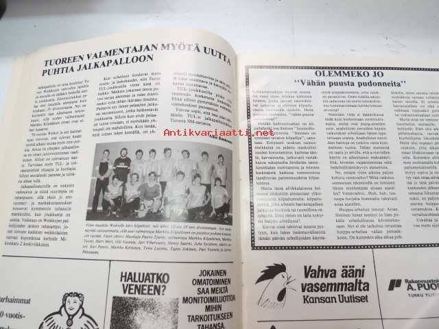 | Saatavilla | 1 kpl | | Julkaisuvuosi | 1982 | | Sivuja | 42 | | Painos | 1. | | Kunto | K2 | | Sidonta/painoasu | Nidottu (pehmeäk.) | | Kielet | Suomi |