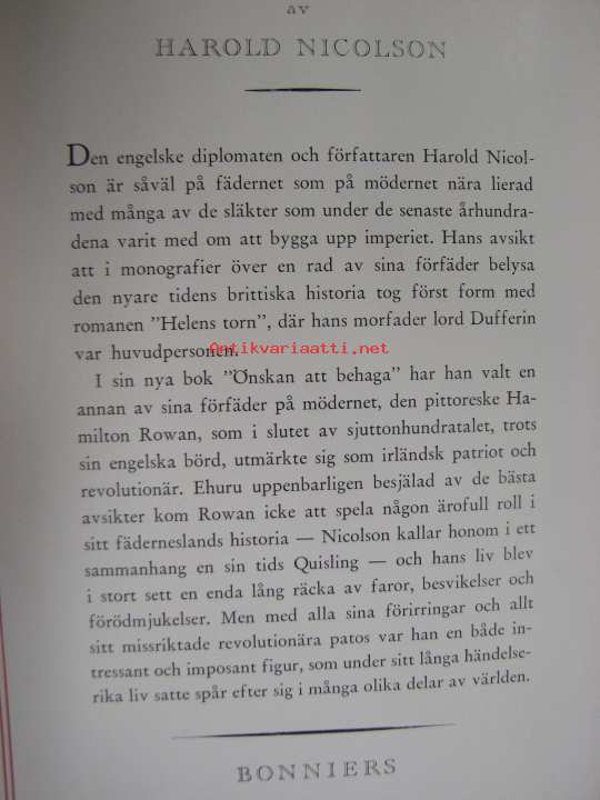 Nicolson Harold, Albert Bonniers Förlag, 194416 x 23 cm kirja.