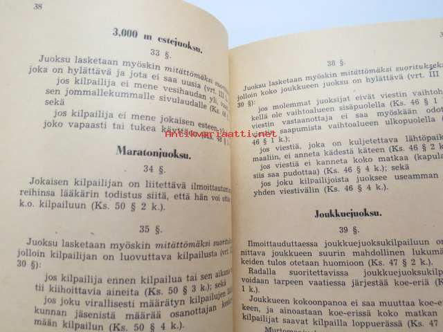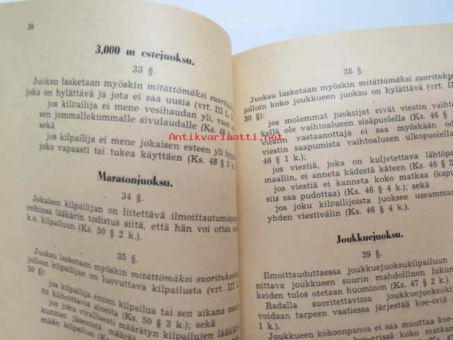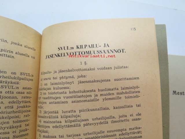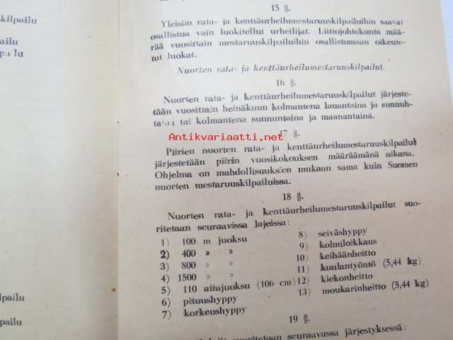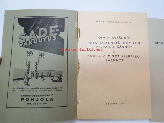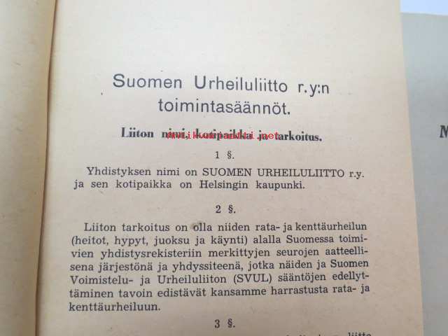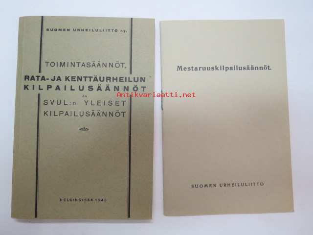 Suomen Urheiluliitto, 1945, 1946Suomen Urheiluliitto toimintasäännöt, rata- ja kenttäurheilun kilpailusäännöt, SVUL:n yleiset kilpailusäännöt 1945 + erilliset Mestaruuskilpailusäännöt 1946 -athletics competitions rules book