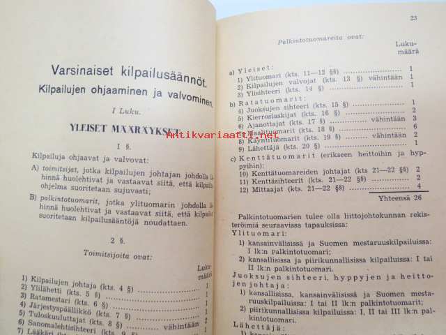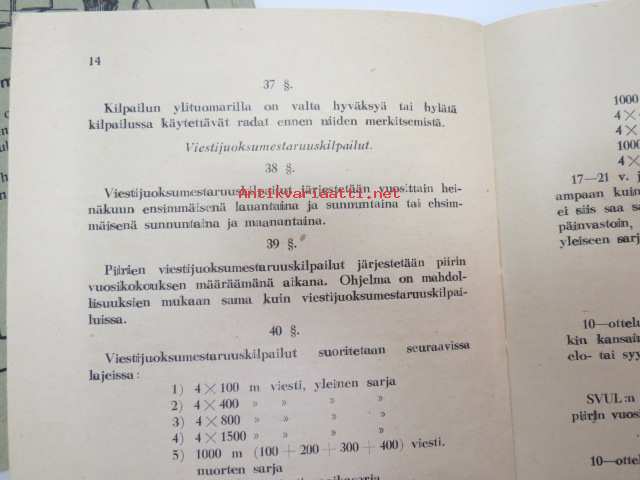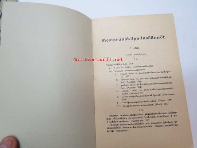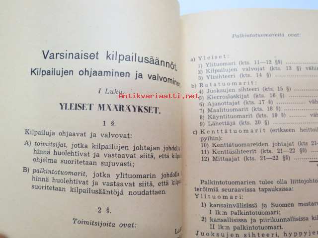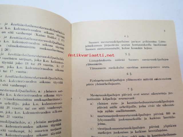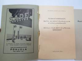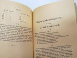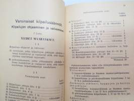 Suomen Urheiluliitto toimintasäännöt, rata- ja kenttäurheilun kilpailusäännöt, SVUL:n yleiset kilpailusäännöt 1945 + erilliset Mestaruuskilpailusäännöt