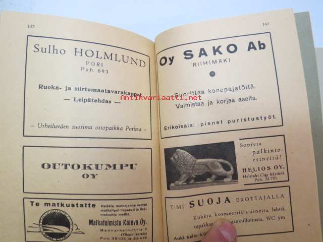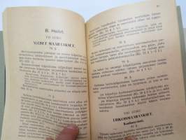 | Saatavilla | 1 kpl | | Julkaisuvuosi | 1945, 1946 | | Sivuja | 148 + 15 | | Painos | 1. | | Kunto | K3 | | Sidonta/painoasu | Nidottu (pehmeäk.) | | Kielet | Suomi |