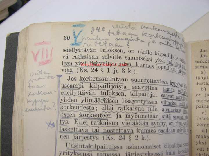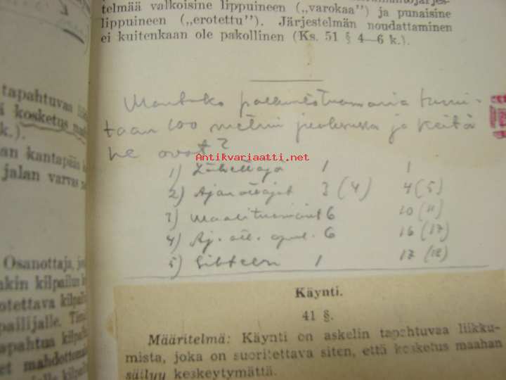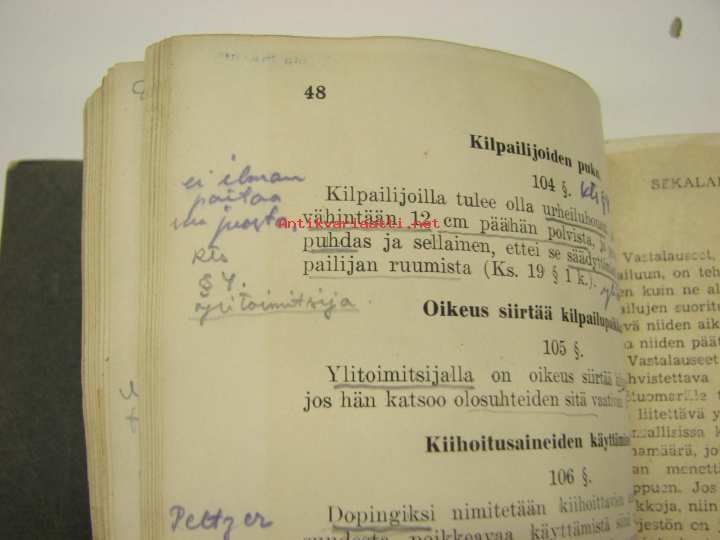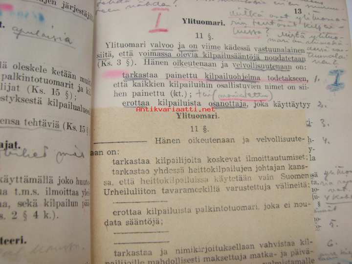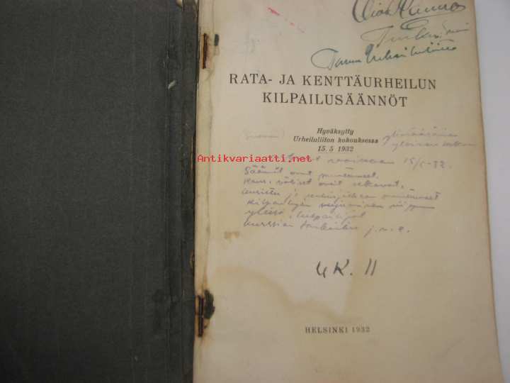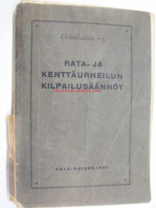 Urheiluliitto, 193213 x 18 cm kirja. Runsaasti kommentteja ja korjauksia, ollut aikanaan tunnetun ja aktiivisen urheilumiehen, Oiva Rainion oma kappale.