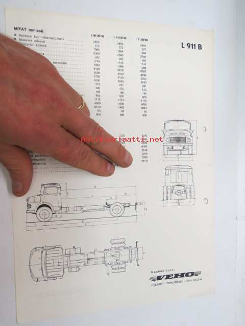 Mercedes-Benz L 911 B -myyntiesite - mittapiirros / tekniset tiedot -data sheet
