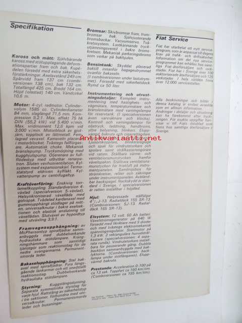 Fiat 131 Mirafiori -myyntiesite (ruotsinkielinen) -brochure in swedish
