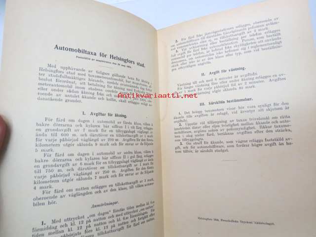 Automobiltaxa Helsingfors 1924 -taxi rates