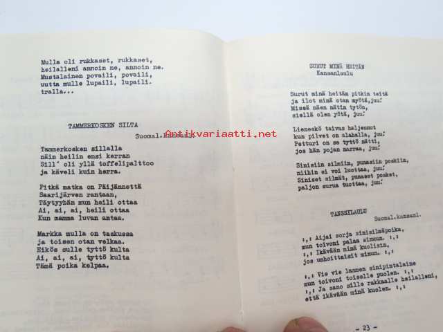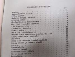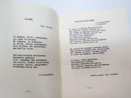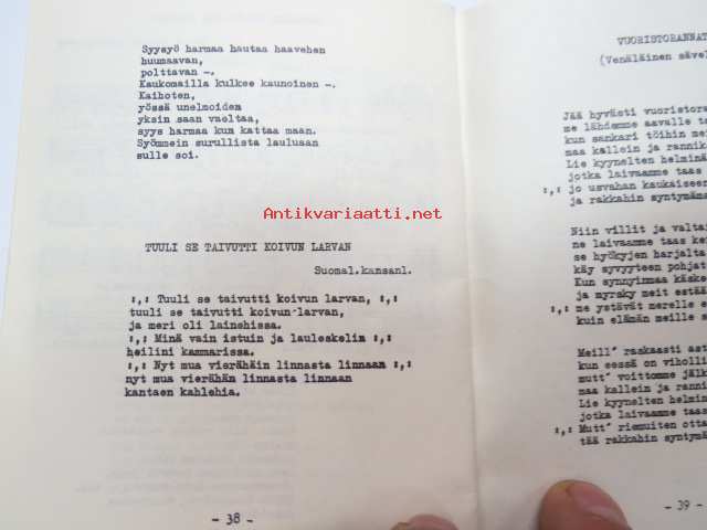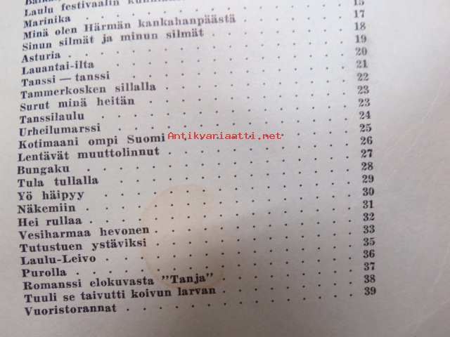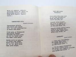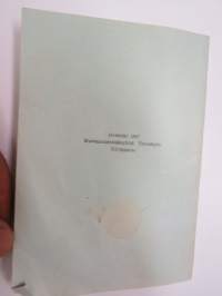 | Saatavilla | 1 kpl | | Julkaisuvuosi | 1957 | | Sivuja | 39 | | Painos | 1. | | Kunto | K2 | | Sidonta/painoasu | Nidottu (pehmeäk.) | | Kielet | Suomi |