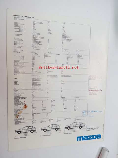 Mazda 323 3-ovinen Hatchback / 4-ovinen Hatchback / 4-ovinen Saloon 1986 -myyntiesite / brochure
