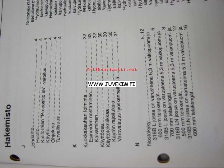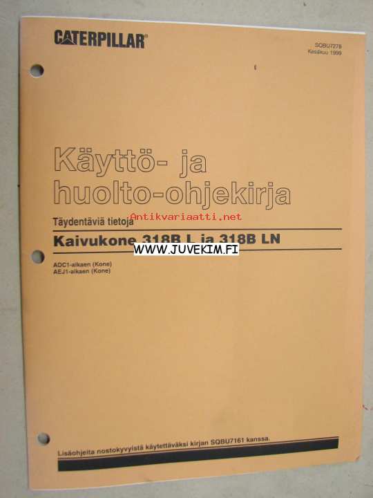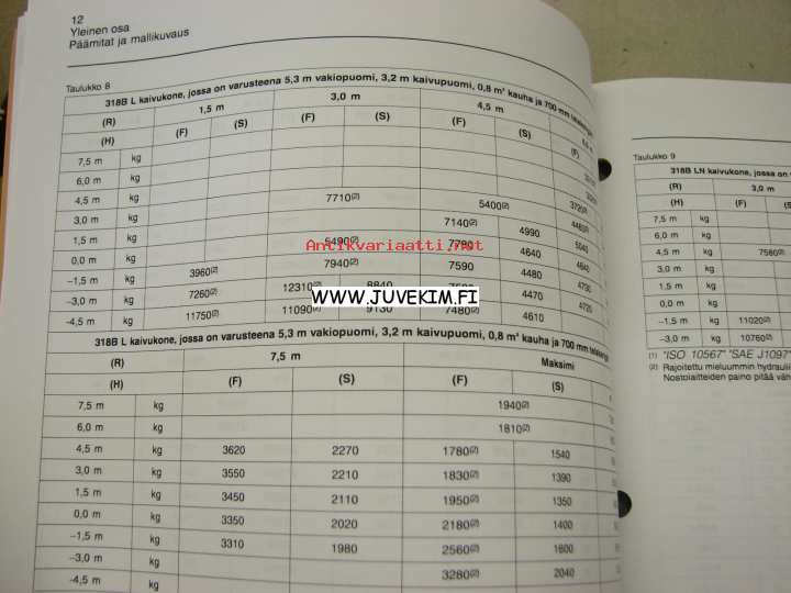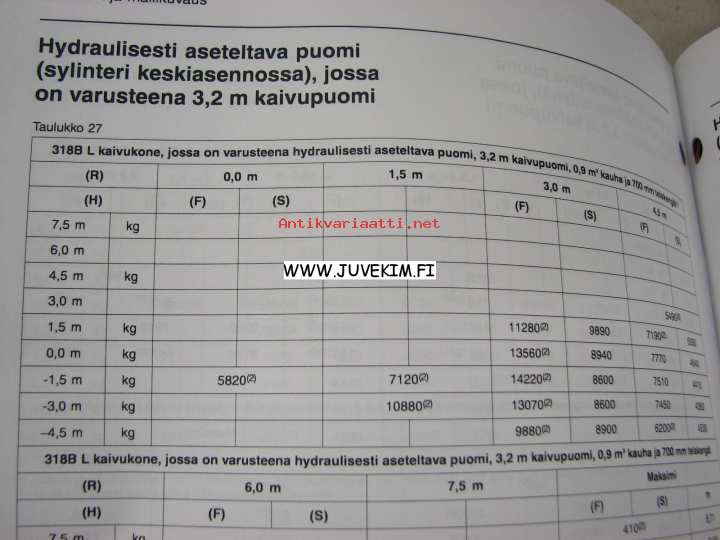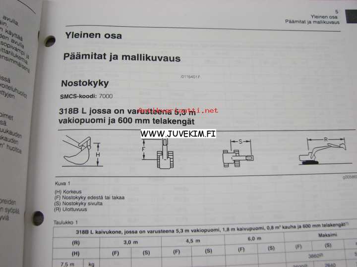 Caterpillar 318B L, 318B LN kaivinkone -käyttöohjekirja, täydentäviä tietoja, lisäohjeita nostokyvyistä varsinaisen käyttöohjekirjan lisäksi
