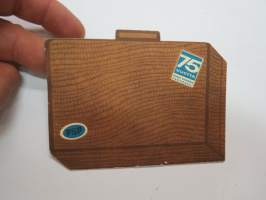 Postisäästöpankki - matkalaukun muotoinen muistilista matkalle lähtijälle - suitcase shaped memorylist for travellers
