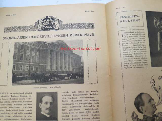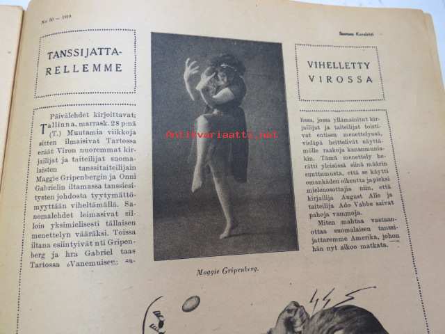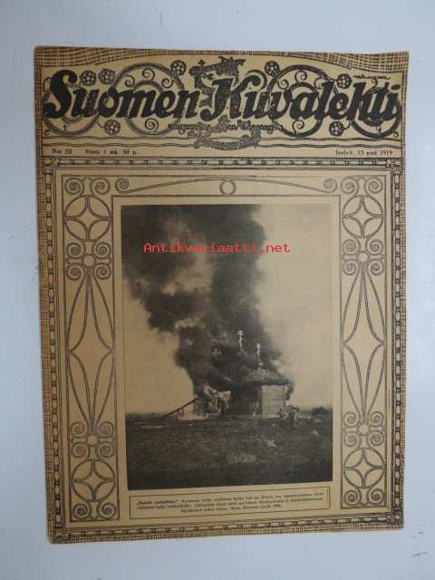 Suomen Kuvalehti 1919 nr 50, ilmestynyt 13.12.1919, sis. mm. seur. artikkelit / kuvat / mainokset, Kansikuva "Rajalla rauhallista" - Kavainnon kylän venäläinen kirkko palaa bolshevikkien sytyttämänä, Ellen Key 70 vuotta, Stenmanin Taidepalatsin avajaisista, Otavan joulukirjoja, Tartu ylikool, Tanssijatar maggie Gripenberg, ym. -magazine