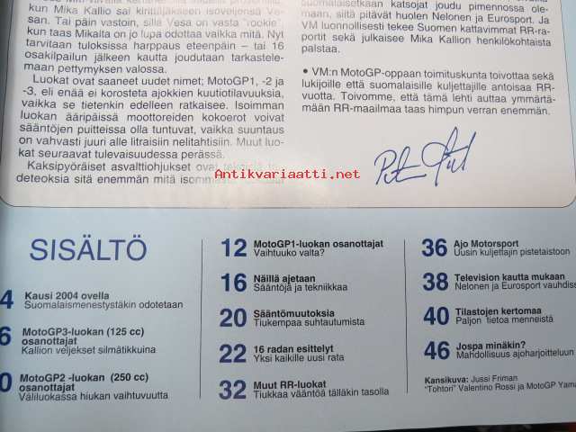 Vauhdin Maailma - Road Racingin kausiopas - Moto GP 2004, radat, kuskit, kalenteri, säännöt, tekniikka, tilastot