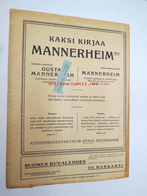 Suomen Kuvalehti 1919 nr 32, ilmestynyt 9.8.1919, sis. mm. seur. artikkelit / kuvat / mainokset, Kansikuva "Hauskaa kesälukemistai", Armas Järnefelt, Vienan-karjalaisen laulu, Åitkä Ville -jättiläistykki löydetty Danzigista (pommitti Pariisia maailmansodassa), Muistelmia Ylivieskan herättäjäjuhlilta, Aunuksen pyrkimys Suomen yhteyteen - kapteeni Niilo Swan (Turku) kaatunut 27.6.1919 Tuuloksen taistelussa, ym. -magazine