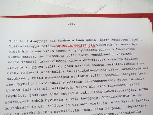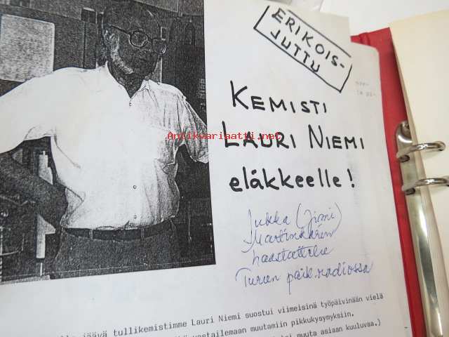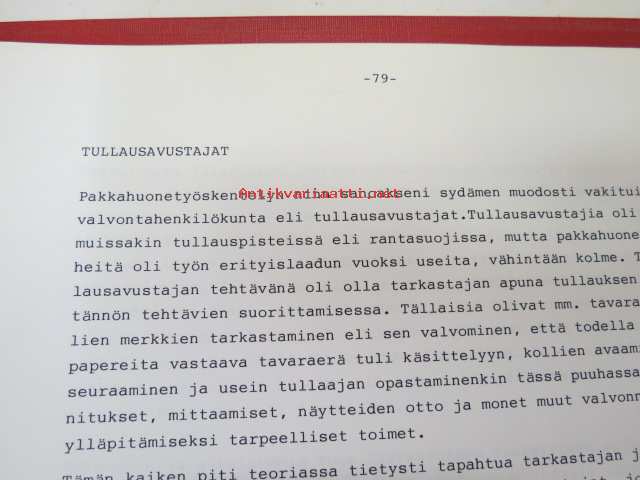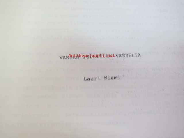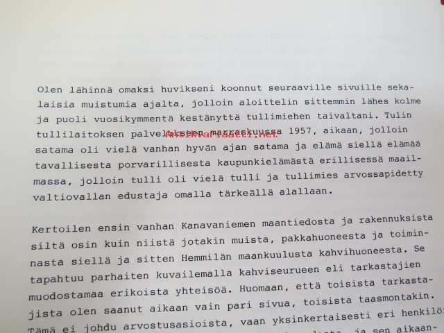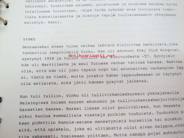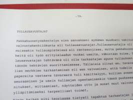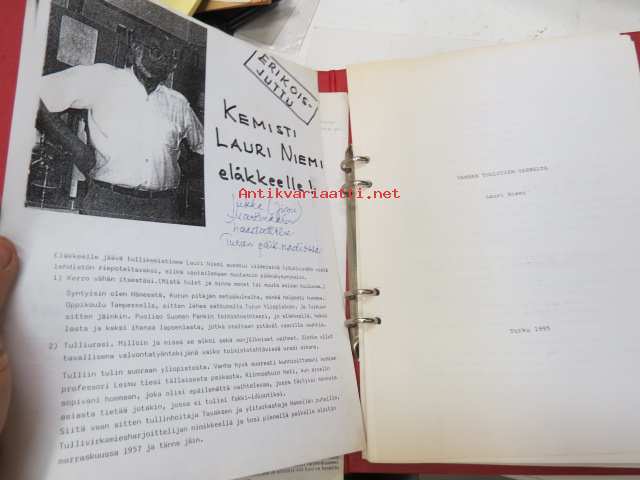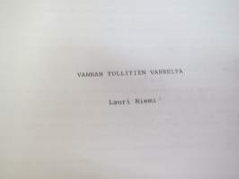 Vanhan tullitien varrelta - julkaisematon käsikirjoitus noin 35 vuoden uralta 1957 - noin 1990-luvun alkuun tullihallinnon palveluksessa, kirjoittanut kemisti Lauri Niemi, käsittelee henkilökuntaa, tullin toimintaa yleensä jne. Turun alueella -memoirs