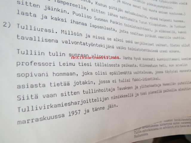 Vanhan tullitien varrelta - julkaisematon käsikirjoitus noin 35 vuoden uralta 1957 - noin 1990-luvun alkuun tullihallinnon palveluksessa, kirjoittanut kemisti