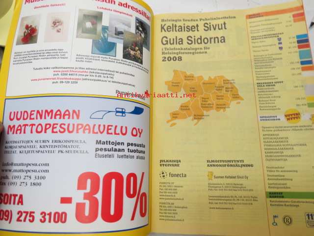 Helsingin seudun puhelinluettelo 2008 -Keltaiset sivut / Helsingforsregionen - Gula sidorna -telephone catalog (Helsinki area) - yellow pages