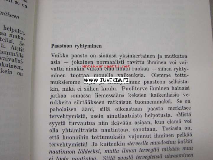 | Saatavilla | 1 kpl | | Julkaisuvuosi | 1972 | | Sivuja | 168 | | Painos | 2. | | Kunto | K3 | | Sidonta/painoasu | Nidottu (pehmeäk.) | | ISBN | 951-23-0531-3 | | Kielet | Suomi |