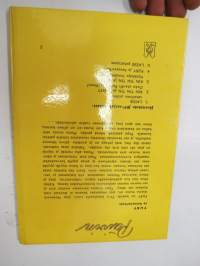 | Saatavilla | 1 kpl | | Julkaisuvuosi | 1966 | | Sivuja | 34 | | Painos | 1. | | Kunto | K2 | | Sidonta/painoasu | Kuvitettu kovakantinen | | Kielet | Suomi |