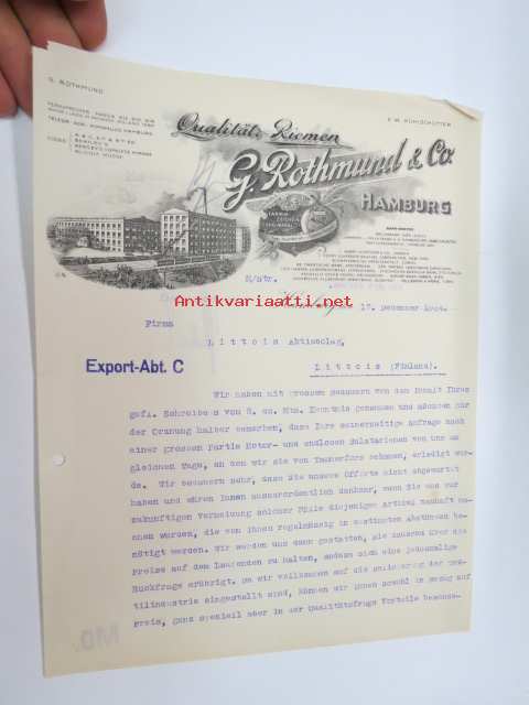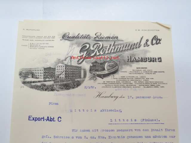 Qualitäts Riemen G. Rothmund & Co (E.W. Kohlschütter) - Hamburg, 17.12.1924 -asiakirja / business document