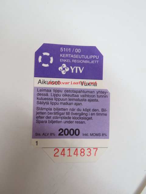 YTV Kertaseutulippu 2000 nr 2414837 Aikuiset/Vuxna - matkalippu / travel ticket