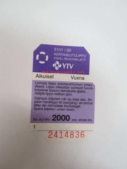 YTV Kertaseutulippu 2000 nr 2414836 Aikuiset/Vuxna - matkalippu / travel ticket