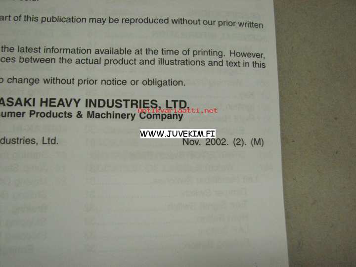 Kawasaki Heavy Industries, 200210 x 15 cm käyttöohjekirja.