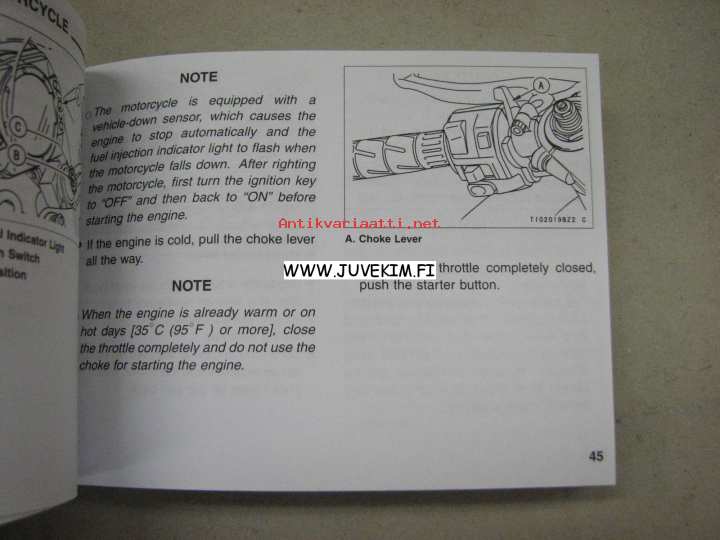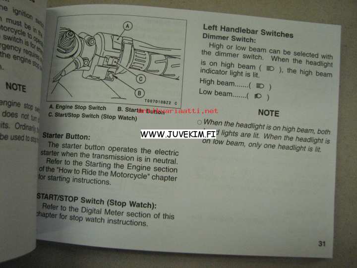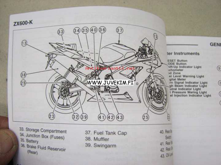 Kawasaki ZX-6R Ninja (ZX636-B, ZX600-K) motorcycle owner´s manual -käyttöohjekirja englanniksi
