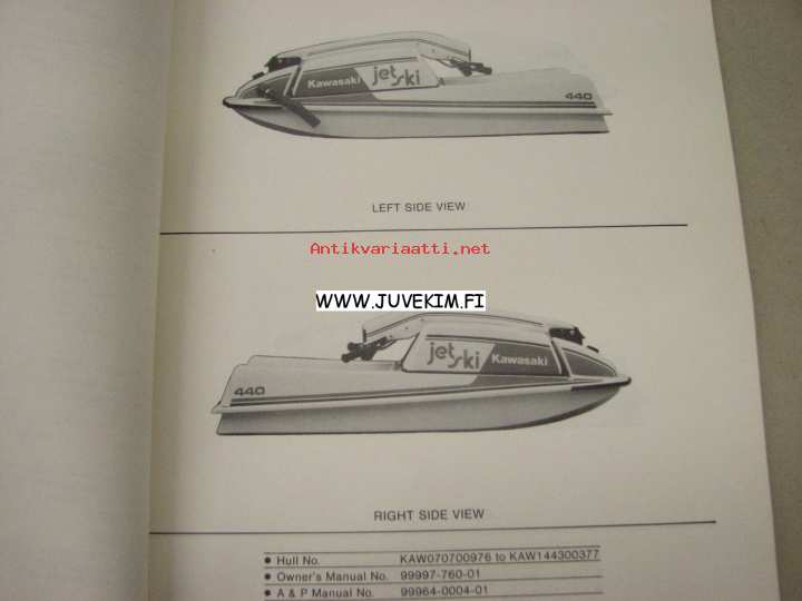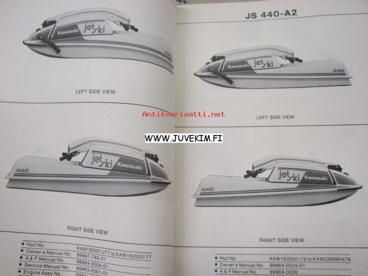 Kawasaki JS 440-A Jet Ski Watercraft parts catalog -vesijetti varaosaluettelo