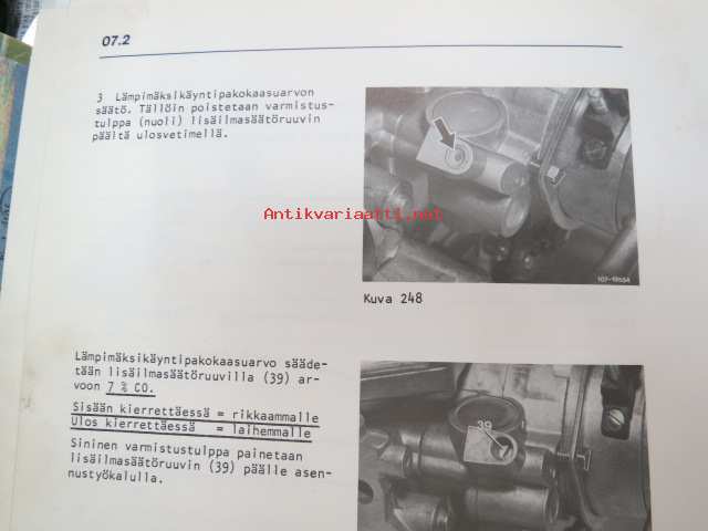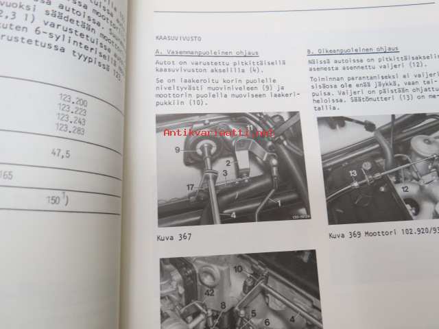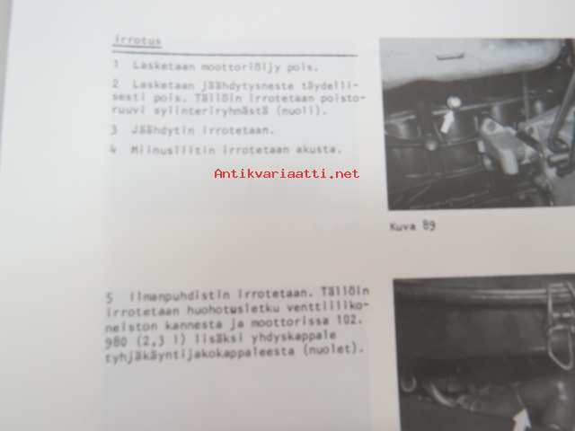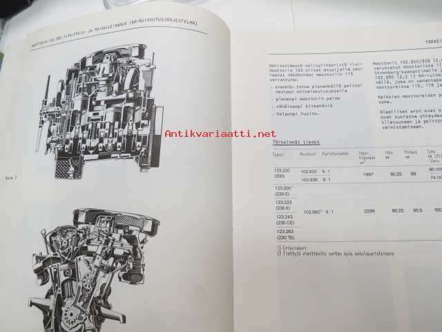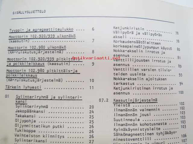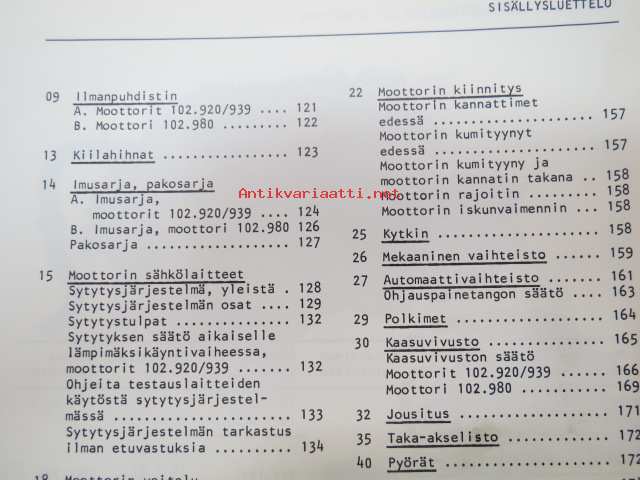 Mercedes-Benz - Moottorilla 102 varustetut henkilöautotyypit - ohjevihkonen huoltoa varten / service manual in finnish