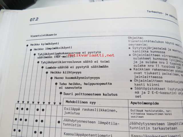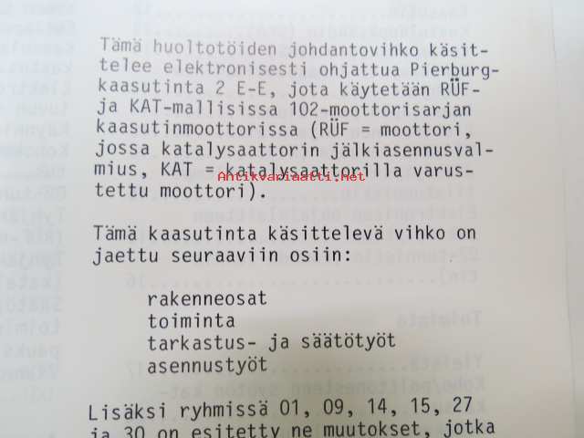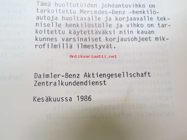 Mercedes-Benz - Moottorit 102 RÜF/KAT varustettuna 2 E-E kaasuttimella - Huoltotöiden johdantovihko / service manual in finnish