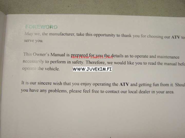 Herchee Motorscooter ATV Road Version owner´s manual -käyttöohjekirja
