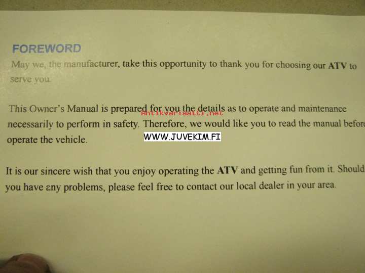 Herchee Motorscooter ATV owner´s manual -käyttöohjekirja