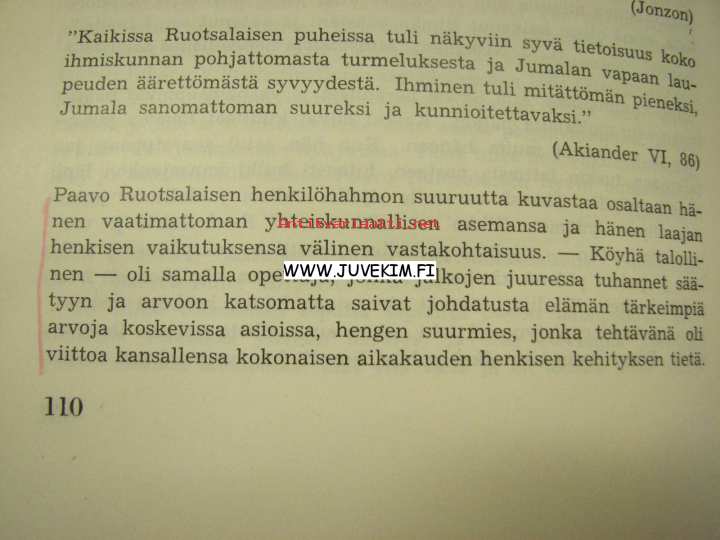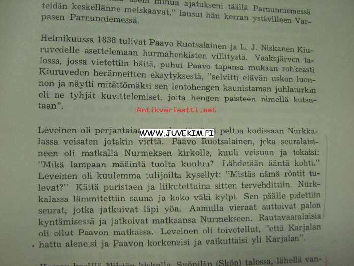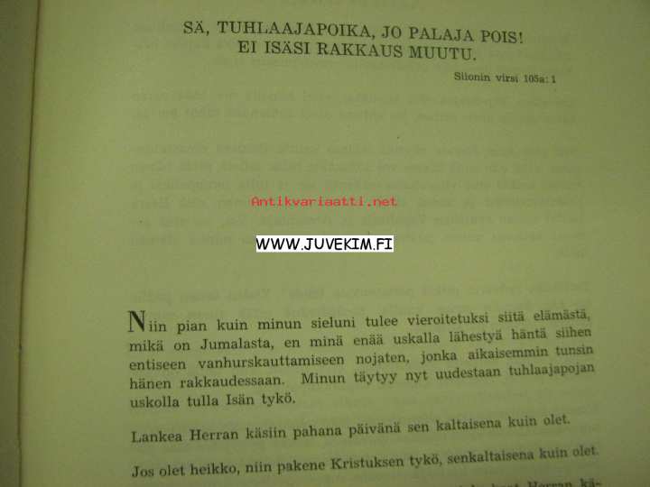 | Saatavilla | 1 kpl | | Julkaisuvuosi | 1948 | | Sivuja | 160 | | Painos | 1. | | Kunto | K3 | | Sidonta/painoasu | Sidottu (kansipaperit) | | Kielet | Suomi |